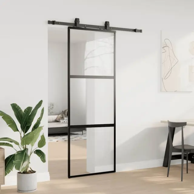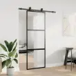 vidaXL Drsna vrata z opremo črna 76x205 cm kaljeno steklo