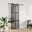 vidaXL Drsna vrata z opremo črna 76x205 cm kaljeno steklo