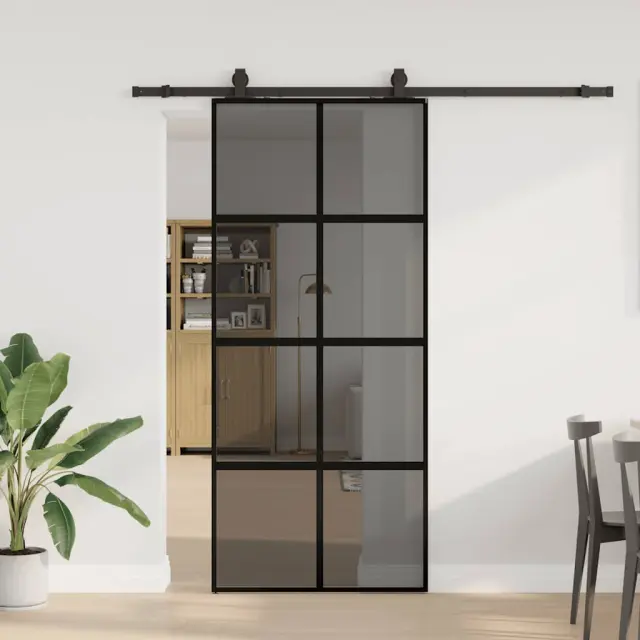 vidaXL Drsna vrata z opremo črna 90x205 cm kaljeno steklo