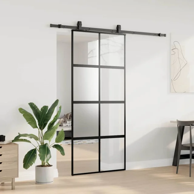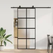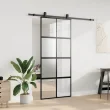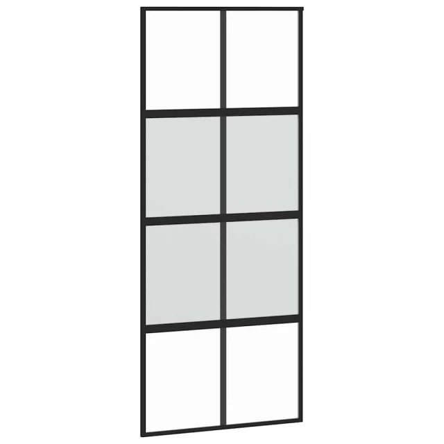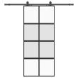 vidaXL Drsna vrata z opremo črna 90x205 cm kaljeno steklo