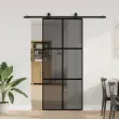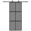 vidaXL Drsna vrata z opremo črna 90x205 cm kaljeno steklo
