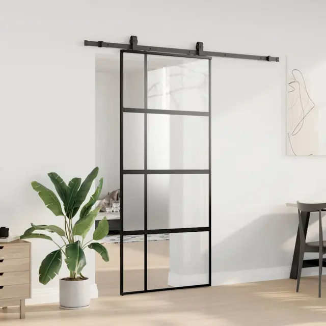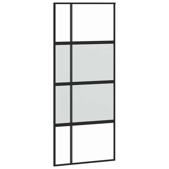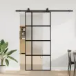 vidaXL Drsna vrata z opremo črna 90x205 cm kaljeno steklo