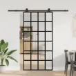 vidaXL Drsna vrata z opremo ESG steklo in aluminij 102x205 cm
