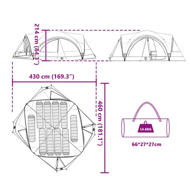 vidaXL Družinski šotor s streho Siva in oranžna 460 x 430 x 214 cm