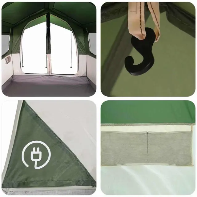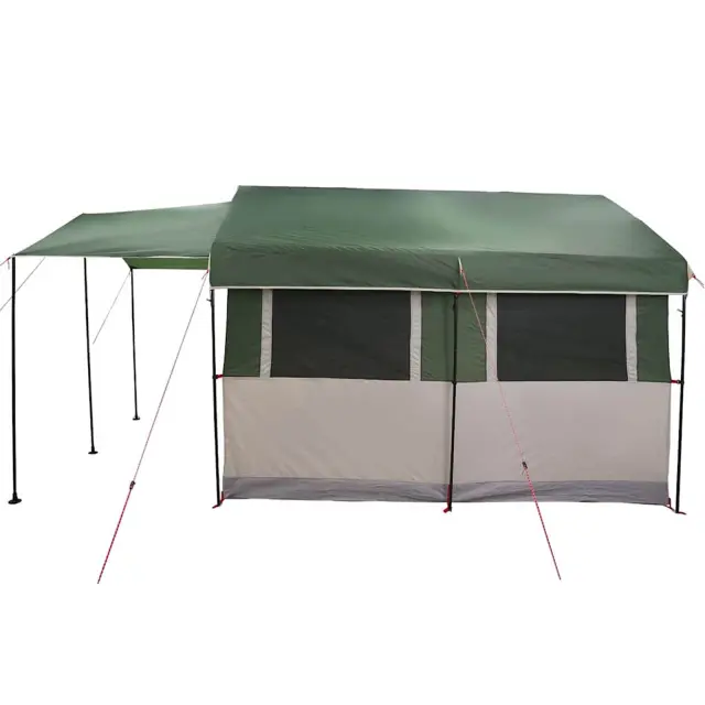 vidaXL Družinski šotor s streho Zelena in Bela 324 x 255 x 230 cm