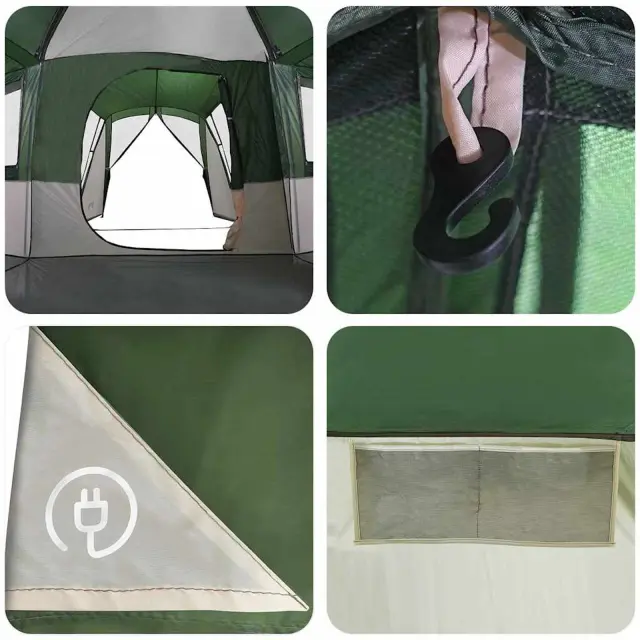 vidaXL Družinski šotor s streho Zelena in Bela 745 x 700 x 217 cm