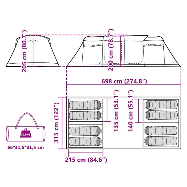 vidaXL Družinski šotor za 8 oseb zelen vodoodporen