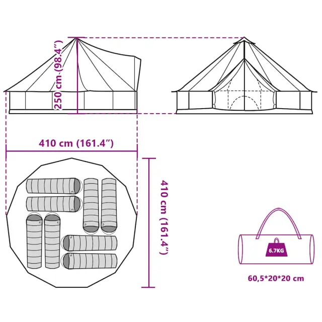 vidaXL Družinski šotor tipi za 8 oseb zelen vodoodporen