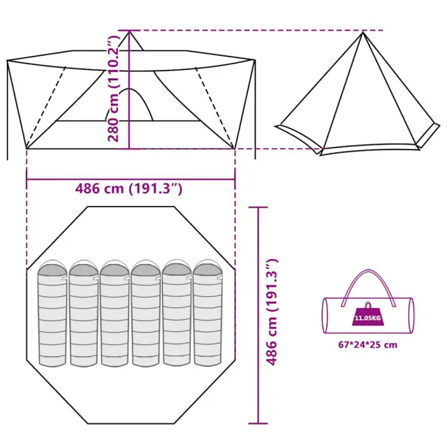 vidaXL Družinski šotor tipi za 6 oseb zelen vodoodporen