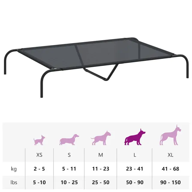 vidaXL dvignjena pasja postelja črna 130x80x20 cm tekstilen in jeklo
