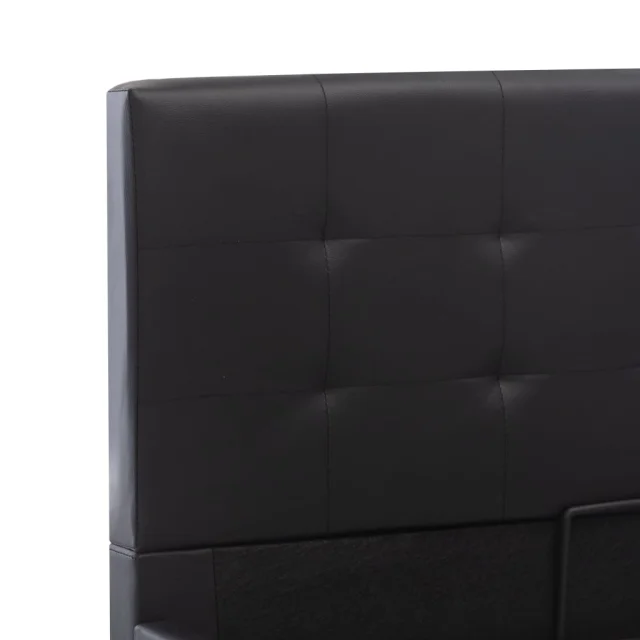 Prašno premazan jeklen okvir in letvice iz borovine postelji dodajajo trdnost in trpežnost. Oblečena je v sijoče umetno usnje, zato ta postelja s prostorom za shranjevanje izgleda vabljivo ter omogoča enostavno vzdrževanje. To pohištvo za spalnico je primerno za vzmetnico velikosti 140 x 200 cm.