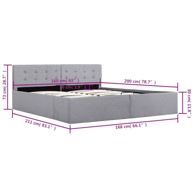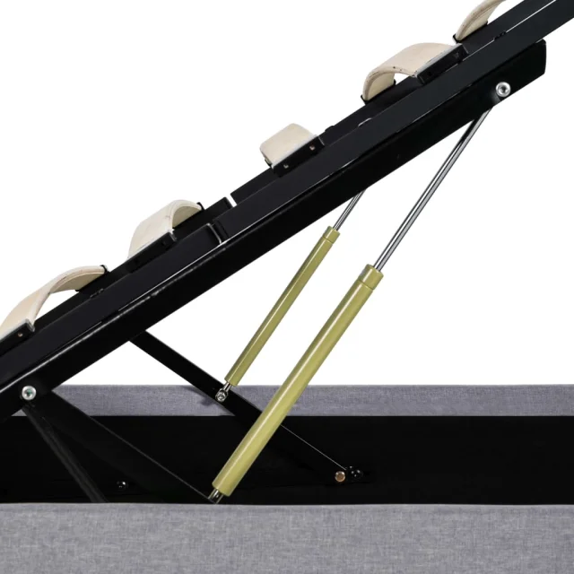 Ta oblazinjena postelja bo neuporabljeni prostor pod vzmetnico spremenila v prostor za shranjevanje, kamor boste lahko shranili oblačila, rjuhe, odeje itd. Hidravlični plinski mehanizem zagotavlja preprosto dvigovanje vzmetnice. Ko boste posteljo dvignili, bo letveno dno ostalo dvignjeno, zato boste imeli roke proste za shranjevanje stvari pod vzmetnico.