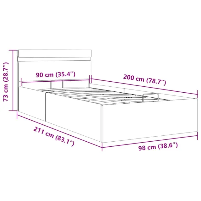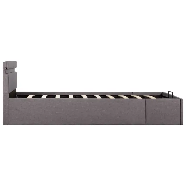 Dodajte vaši spalnici osupljiv moderen pridih z našim dvižnim posteljnim okvirjem iz blaga! Ta enojna postelja se ponaša s preprostim in stilskim dizajnom ter trdno konstrukcijo, saj je izdelana iz močnega in robustnega mediapana. Ta oblazinjena postelja bo neuporabljeni prostor pod vzmetnico spremenila v prostor za shranjevanje, kamor boste lahko shranili oblačila, rjuhe, odeje itd. Hidravlični plinski mehanizem zagotavlja preprosto dvigovanje vzmetnice. Ko boste posteljo dvignili, bo letveno dno ostalo dvignjeno, zato boste imeli roke proste za shranjevanje stvari pod vzmetnico. Jeklen okvir s prašnim premazom in letve iz vezanega lesa dajejo postelji trdnost in dolgotrajnost. Dvižna postelja je obložena z vzdržljivim blagom, izgleda vabljivo in je preprosta za vzdrževanje. Ta izdelek je preprost za sestavo. To pohištvo za spalnico je primerno za vzmetnico velikosti 90 x 200 cm. Poleg tega lahko moč, svetlost in različne utripajoče barve LED svetlobnega traku nastavite s priloženim popolnoma funkcionalnim daljinskim upravljalnikom s 24 tipkami ter tako ustvarite osupljivo svetlobno predstavo. Prosimo upoštevajte, da paket vsebuje samo posteljni okvir, vzmetnica ni priložena. V naši trgovini si lahko ogledate primerno vzmetnico. Izdelek ima priključek USB, vendar certificiran vir napajanja 5V USB ni priložen.Posteljni okvir:Barva: TaupeMaterial: Obloga iz blaga + letve iz vezanega lesa + okvir iz jekla in mediapanaCelotna velikost: 211 x 98 x 73 cm (D x Š x V)Velikost primerne vzmetnice: 90 x 200 cm (Š x D) (vzmetnica ni priložena)S prostorom za shranjevanjeEnostaven, hidravlični plinski dvižni mehanizemLED trak:Dolžina: 90 cmMoč: 3,6 WDaljinski upravljalnik s 24 tipkami za namestitev moči, svetlosti in različnih barvTkanina: Poliester: 100% 285624