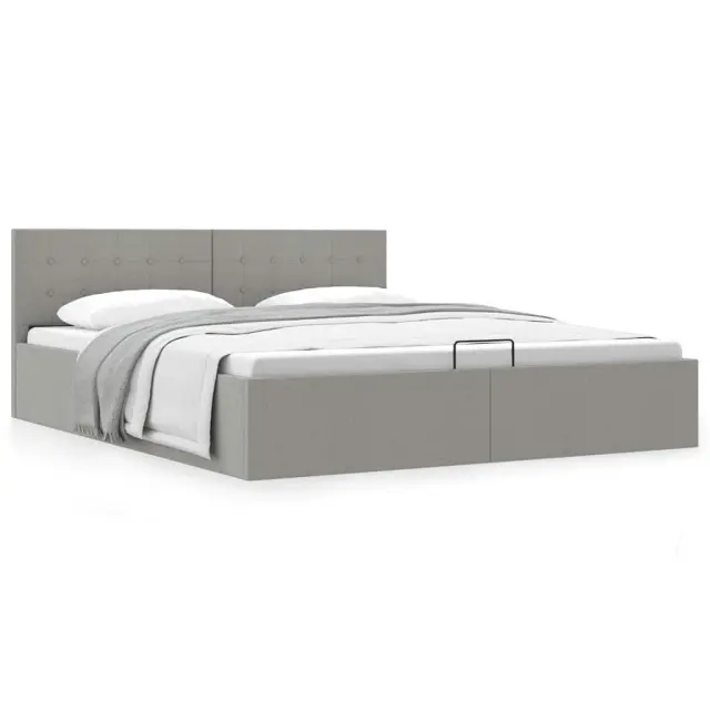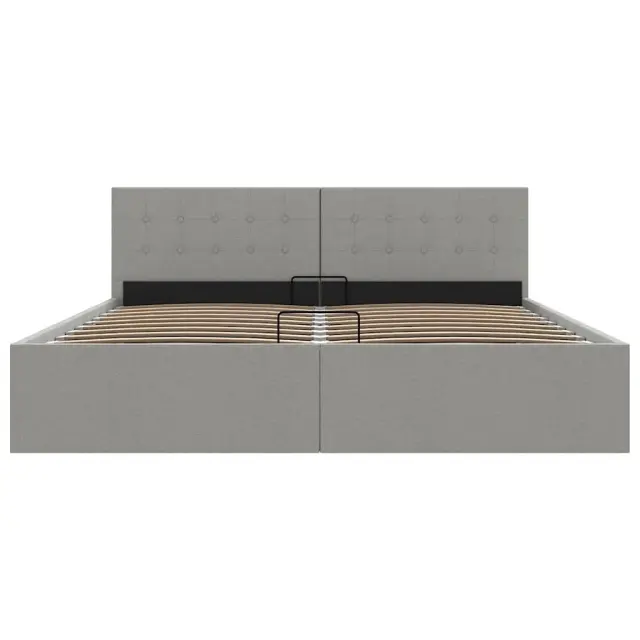 Dodajte svoji spalnici osupljiv moderen pridih z našim dvižnim posteljnim okvirjem iz blaga! Ta zakonska postelja se ponaša s preprostim in stilskim dizajnom ter trdno konstrukcijo, saj je izdelana iz močnega in robustnega mediapana. Ta oblazinjena postelja bo neuporabljeni prostor pod vzmetnico spremenila v prostor za shranjevanje, kamor boste lahko shranili oblačila, rjuhe, odeje itd. Hidravlični plinski mehanizem zagotavlja preprosto dvigovanje vzmetnice. Ko boste posteljo dvignili, bo letveno dno ostalo dvignjeno, zato boste imeli roke proste za shranjevanje stvari pod vzmetnico. Prašno premazan jeklen okvir in letvice iz borovine postelji dodajajo trdnost in trpežnost. Oblečena je v trpežno blago, zato ta postelja s prostorom za shranjevanje izgleda vabljivo ter omogoča enostavno vzdrževanje. To pohištvo za spalnico je primerno za vzmetnico velikosti 180 x 200 cm. Prosimo upoštevajte, da paket vsebuje samo posteljni okvir, vzmetnica ni priložena. V naši trgovini si lahko ogledate primerno vzmetnico.Barva: Svetlo sivaMaterial: Obloga iz blaga + letve iz vezanega lesa + okvir iz jekla in mediapanaCelotna velikost: 211 x 188 x 73 cm (D x Š x V)Velikost primerne vzmetnice: 180 x 200 cm (Š x D) (vzmetnica ni priložena)S prostorom za shranjevanjeEnostaven, hidravlični plinski dvižni mehanizemTkanina: Poliester: 100% 285581