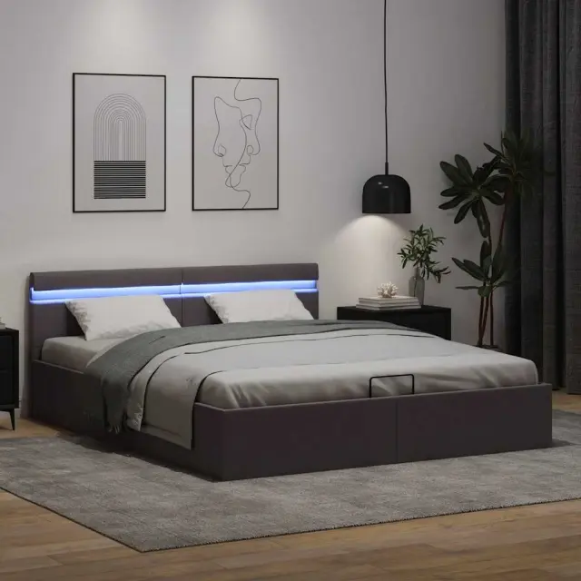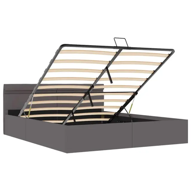 Dodajte svoji spalnici osupljiv moderen pridih z našim dvižnim posteljnim okvirjem iz umetnega usnja! Ta zakonska postelja se ponaša s preprostim in stilskim dizajnom ter trdno konstrukcijo, saj je izdelana iz močnega in robustnega mediapana. Ta oblazinjena postelja bo neuporabljeni prostor pod vzmetnico spremenila v prostor za shranjevanje, kamor boste lahko shranili oblačila, rjuhe, odeje itd. Hidravlični plinski mehanizem zagotavlja preprosto dvigovanje vzmetnice. Ko boste posteljo dvignili, bo letveno dno ostalo dvignjeno, zato boste imeli roke proste za shranjevanje stvari pod vzmetnico. Prašno barvan jeklen okvir in vezane letve so še bolj trdni in vzdržljivi. Ta postelja za shranjevanje, oblazinjena v svetleče umetno usnje, izgleda privlačno in je enostavna za vzdrževanje. To pohištvo za spalnico je primerno za ležišče velikosti 160 x 200 cm. To posteljo odlikuje LED osvetlitev, ki jo je mogoče preprosto nastaviti in tako ustvariti posebno svetlobno predstavo. Prilagodite lahko načine, barve in svetlost ter tako izboljšate vzdušje v notranjem prostoru. Ta izdelek je preprost za montažo. Prosimo upoštevajte, da paket vsebuje samo posteljni okvir, vzmetnica ni priložena. V naši trgovini si lahko ogledate primerno vzmetnico. Izdelek ima priključek USB, vendar certificiran vir napajanja 5V USB ni priložen.Posteljni okvir:Barva: SivaMaterial: Obloga iz umetnega usnja + letvice iz vezanega lesa + jeklo in okvir iz mediapanaCelotna velikost: 212 x 167 x 73 cm (D x Š x V)Velikost primerne vzmetnice: 160 x 200 cm (Š x D) (vzmetnica ni priložena)S prostorom za shranjevanjeEnostaven, hidravlični plinski dvižni mehanizemLED trak:Dolžina: 55 cmNapetost: DC 5 VDolžina kabla USB : 150 cmDolžina električnega kabla: 30 cmIP ocena: IP65S simbolom za rezanje s škarjamiTkanina: Bombaž: 4%, Poliester: 2%, PVC: 94% 285556