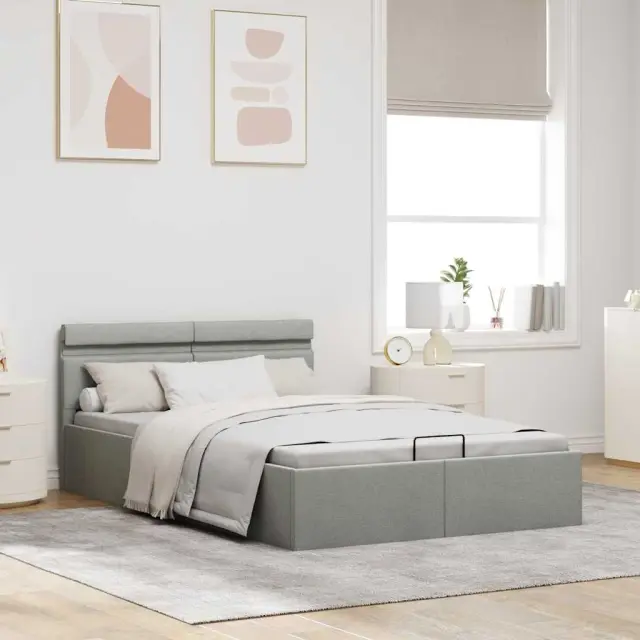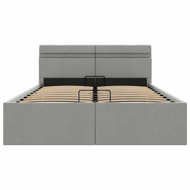 Dodajte svoji spalnici osupljiv moderen pridih z našim dvižnim posteljnim okvirjem iz blaga! Ta zakonska postelja se ponaša s preprostim in stilskim dizajnom ter trdno konstrukcijo, saj je izdelana iz močnega in robustnega mediapana. Ta oblazinjena postelja bo neuporabljeni prostor pod vzmetnico spremenila v prostor za shranjevanje, kamor boste lahko shranili oblačila, rjuhe, odeje itd. Hidravlični plinski mehanizem zagotavlja preprosto dvigovanje vzmetnice. Ko boste posteljo dvignili, bo letveno dno ostalo dvignjeno, zato boste imeli roke proste za shranjevanje stvari pod vzmetnico. Jeklen okvir s prašnim premazom in letve iz vezanega lesa dajejo postelji trdnost in dolgotrajnost. Dvižna postelja je obložena z vzdržljivim blagom, izgleda vabljivo in je preprosta za vzdrževanje. Ta izdelek je preprost za sestavo. To pohištvo za spalnico je primerno za vzmetnico velikosti 140 x 200 cm. Poleg tega lahko moč, svetlost in različne utripajoče barve LED svetlobnega traku nastavite s priloženim popolnoma funkcionalnim daljinskim upravljalnikom s 24 tipkami ter tako ustvarite osupljivo svetlobno predstavo. Prosimo upoštevajte, da paket vsebuje samo posteljni okvir, vzmetnica ni priložena. V naši trgovini si lahko ogledate primerno vzmetnico. Izdelek ima priključek USB, vendar certificiran vir napajanja 5V USB ni priložen.Posteljni okvir:Barva: Svetlo sivaMaterial: Obloga iz blaga + letve iz vezanega lesa + okvir iz jekla in mediapanaCelotna velikost: 211 x 148 x 73 cm (D x Š x V)Velikost primerne vzmetnice: 140 x 200 cm (Š x D) (vzmetnica ni priložena)S prostorom za shranjevanjeEnostaven, hidravlični plinski dvižni mehanizemLED trak:Dolžina: 140 cmMoč: 5,6 WDaljinski upravljalnik s 24 tipkami za namestitev moči, svetlosti in različnih barvTkanina: Poliester: 100% 285609