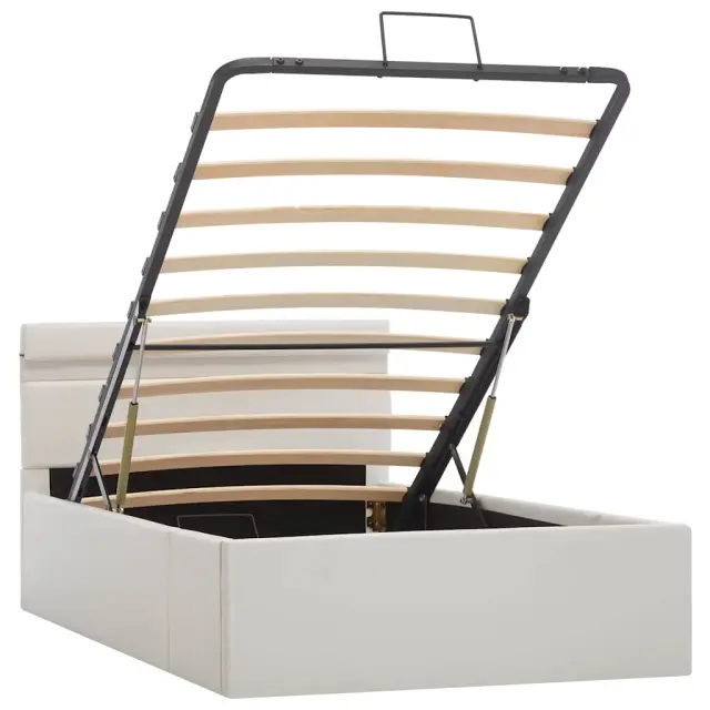 Dodajte svoji spalnici osupljiv moderen pridih z našim dvižnim posteljnim okvirjem iz umetnega usnja! Ta enojna postelja se ponaša s preprostim in stilskim dizajnom ter trdno konstrukcijo, saj je izdelana iz močnega in robustnega mediapana. Ta oblazinjena postelja bo neuporabljeni prostor pod vzmetnico spremenila v prostor za shranjevanje, kamor boste lahko shranili oblačila, rjuhe, odeje itd. Hidravlični plinski mehanizem zagotavlja preprosto dvigovanje vzmetnice. Ko boste posteljo dvignili, bo letveno dno ostalo dvignjeno, zato boste imeli roke proste za shranjevanje stvari pod vzmetnico. Prašno barvan jeklen okvir in vezane letve so še bolj trdni in vzdržljivi. Ta postelja za shranjevanje, oblazinjena v svetleče umetno usnje, izgleda privlačno in je enostavna za vzdrževanje. To pohištvo za spalnico je primerno za ležišče velikosti 90 x 200 cm. To posteljo odlikuje LED osvetlitev, ki jo je mogoče preprosto nastaviti in tako ustvariti posebno svetlobno predstavo. Prilagodite lahko načine, barve in svetlost ter tako izboljšate vzdušje v notranjem prostoru. Ta izdelek je preprost za montažo. Prosimo upoštevajte, da paket vsebuje samo posteljni okvir, vzmetnica ni priložena. V naši trgovini si lahko ogledate primerno vzmetnico. Izdelek ima priključek USB, vendar certificiran vir napajanja 5V USB ni priložen.Posteljni okvir:Barva: BelaMaterial: Obloga iz umetnega usnja + letvice iz vezanega lesa + jeklo in okvir iz mediapanaCelotna velikost: 212 x 97 x 73 cm (D x Š x V)Velikost primerne vzmetnice: 90 x 200 cm (Š x D) (vzmetnica ni priložena)S prostorom za shranjevanjeEnostaven, hidravlični plinski dvižni mehanizemLED trak:Dolžina: 55 cmNapetost: DC 5 VDolžina kabla USB : 150 cmDolžina električnega kabla: 30 cmIP ocena: IP65S simbolom za rezanje s škarjamiTkanina: Bombaž: 4%, Poliester: 2%, PVC: 94% 285546