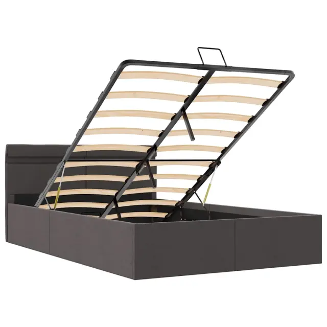 Dodajte svoji spalnici osupljiv moderen pridih z našim dvižnim posteljnim okvirjem iz blaga! Ta zakonska postelja se ponaša s preprostim in stilskim dizajnom ter trdno konstrukcijo, saj je izdelana iz močnega in robustnega mediapana. Ta oblazinjena postelja bo neuporabljeni prostor pod vzmetnico spremenila v prostor za shranjevanje, kamor boste lahko shranili oblačila, rjuhe, odeje itd. Hidravlični plinski mehanizem zagotavlja preprosto dvigovanje vzmetnice. Ko boste posteljo dvignili, bo letveno dno ostalo dvignjeno, zato boste imeli roke proste za shranjevanje stvari pod vzmetnico. Jeklen okvir s prašnim premazom in letve iz vezanega lesa postelji zagotavljajo trdnost in trpežnost. Dvižna postelja je oblečena v vzdržljivo blago, izgleda vabljivo in je preprosta za vzdrževanje. Ta izdelek je preprost za sestavo. To pohištvo za spalnico je primerno za vzmetnico velikosti 120 x 200 cm. Poleg tega lahko moč, svetlost in različne utripajoče barve LED svetlobnega traku nastavite s priloženim popolnoma funkcionalnim daljinskim upravljalnikom s 24 tipkami ter tako ustvarite osupljivo svetlobno predstavo. Prosimo upoštevajte, da paket vsebuje samo posteljni okvir, vzmetnica ni priložena. V naši trgovini si lahko ogledate primerno vzmetnico. Izdelek ima priključek USB, vendar certificiran vir napajanja 5V USB ni priložen.Posteljni okvir:Barva: Temno sivaMaterial: Obloga iz blaga + letve iz vezanega lesa + okvir iz jekla in mediapanaCelotna velikost: 211 x 128 x 73 cm (D x Š x V)Velikost primerne vzmetnice: 120 x 200 cm (Š x D) (vzmetnica ni priložena)S prostorom za shranjevanjeEnostaven, hidravlični plinski dvižni mehanizemLED trak:Dolžina: 120 cmMoč: 4,8 WDaljinski upravljalnik s 24 tipkami za namestitev moči, svetlosti in različnih barvTkanina: Poliester: 100% 285602