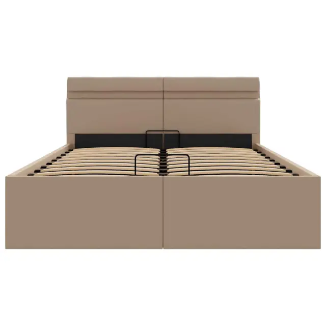 Dodajte svoji spalnici osupljiv moderen pridih z našim dvižnim posteljnim okvirjem iz umetnega usnja! Ta zakonska postelja se ponaša s preprostim in stilskim dizajnom ter trdno konstrukcijo, saj je izdelana iz močnega in robustnega mediapana. Ta oblazinjena postelja bo neuporabljeni prostor pod vzmetnico spremenila v prostor za shranjevanje, kamor boste lahko shranili oblačila, rjuhe, odeje itd. Hidravlični plinski mehanizem zagotavlja preprosto dvigovanje vzmetnice. Ko boste posteljo dvignili, bo letveno dno ostalo dvignjeno, zato boste imeli roke proste za shranjevanje stvari pod vzmetnico. Prašno barvan jeklen okvir in vezane letve so še bolj trdni in vzdržljivi. Ta postelja za shranjevanje, oblazinjena v svetleče umetno usnje, izgleda privlačno in je enostavna za vzdrževanje. To pohištvo za spalnico je primerno za ležišče velikosti 120 x 200 cm. To posteljo odlikuje LED osvetlitev, ki jo je mogoče preprosto nastaviti in tako ustvariti posebno svetlobno predstavo. Prilagodite lahko načine, barve in svetlost ter tako izboljšate vzdušje v notranjem prostoru. Ta izdelek je preprost za montažo. Prosimo upoštevajte, da paket vsebuje samo posteljni okvir, vzmetnica ni priložena. V naši trgovini si lahko ogledate primerno vzmetnico.Posteljni okvir:Barva: KapučinoMaterial: Obloga iz umetnega usnja + letvice iz vezanega lesa + jeklo in okvir iz mediapanaCelotna velikost: 212 x 127 x 73 cm (D x Š x V)Velikost primerne vzmetnice: 120 x 200 cm (Š x D) (vzmetnica ni priložena)S prostorom za shranjevanjeEnostaven, hidravlični plinski dvižni mehanizemLED trak:Dolžina: 55 cmNapetost: DC 5 VDolžina kabla USB : 150 cmDolžina električnega kabla: 30 cmIP ocena: IP65S simbolom za rezanje s škarjamiTkanina: Bombaž: 4%, Poliester: 2%, PVC: 94% 285560