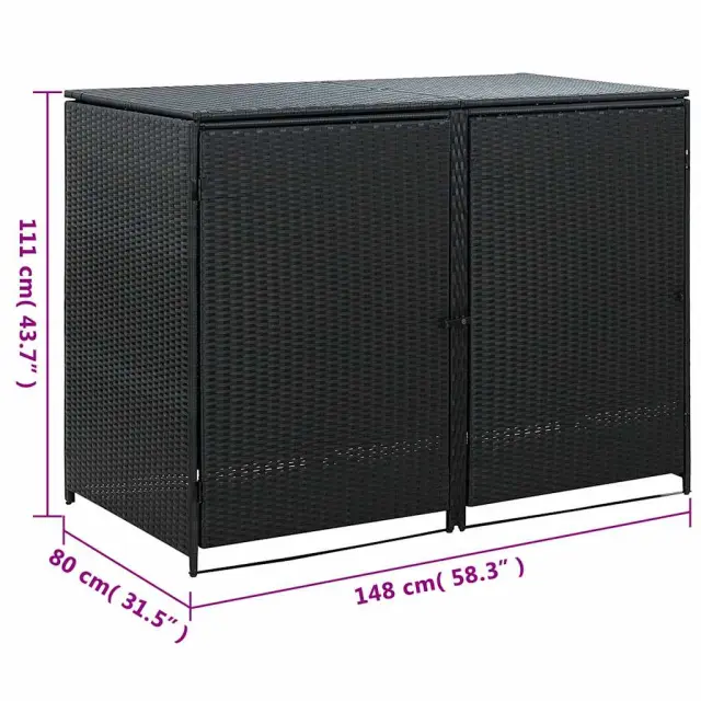 vidaXL Dvojna lopa za koše za smeti poli ratan črna 148x80x111cm