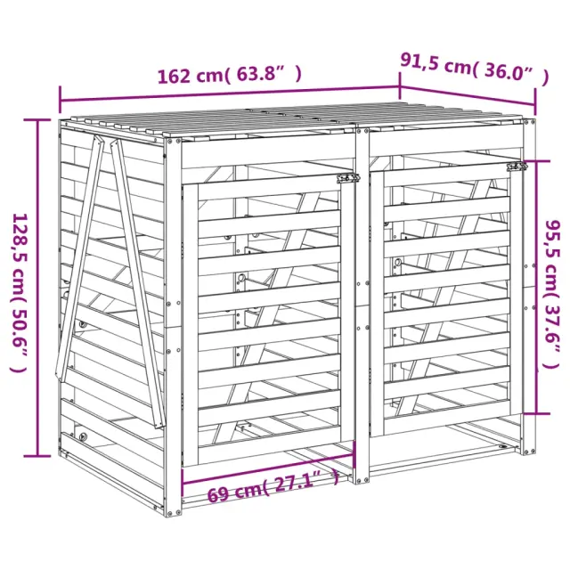 vidaXL Dvojna lopa za smetnjak črna trdna borovina