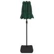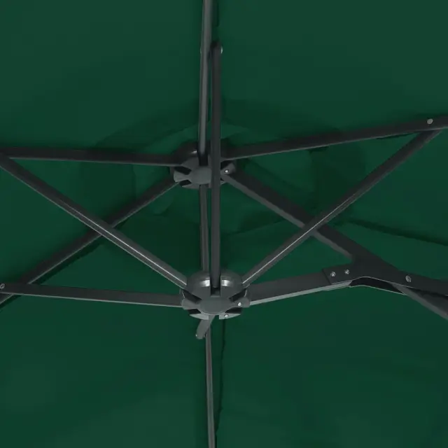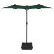 Ta eleganten dvojni senčnik je odlična izbira za zagotavljanje sence in zaščito pred škodljivimi UV žarki. Trpežen material: Vrtni senčnik je izdelan iz poliestra, ki ščiti pred UV-žarki in ne bledi, zato zagotavlja optimalno zaščito pred soncem in enostavno čiščenje.Robusten okvir: Zaradi močnega železnega stebra s prašnim premazom in osmih trpežnih reber je vrtni senčnik zelo stabilen in trden.Mehanizem z ročico: Zaradi mehanizma na ročico se senčnik zlahka odpre in zapre.Močen podstavek: Podstavek z vrečo peska poskrbi, da je senčnik trden in stabilen tudi v močnem vetru in močnem dežju.Barva: Zelena, temno sivaMaterial: Blago (100 % poliester), železo s prašnim premazomDimenzije: 316 x 145 x 240 cm (D x Š x V)Premer palice: 38 mmIma podstavek z vrečo peskaPotrebno sestavljanje: Da 362962