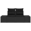 Ta zunanji kavč je stil in praktičnost v enem, kar ga naredi idealno izbiro za sedenje na vrtu ali patioju. Z elegantno črno zasnovo in obilico blazin, prinaša prijetno vzdušje za sproščanje ali druženje na prostem.