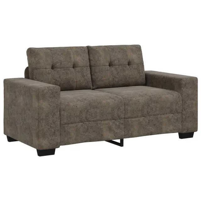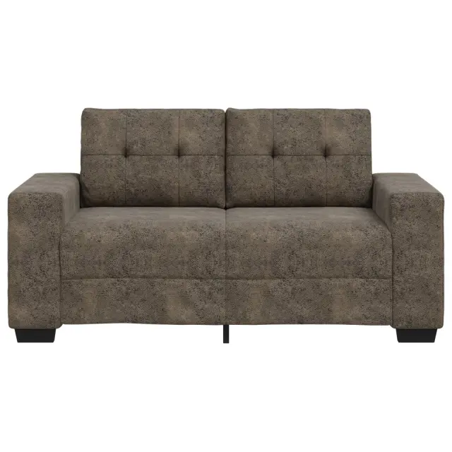 Ta kompaktni dvosedež združuje stil in praktičnost. Idealno se prilega vsakemu modernemu dnevnemu prostoru ali manjšemu stanovanju. Z gladkim temno sivim oblazinjenjem in privlačnimi rjavimi detajli, izstopa ter ustvarja prijetno vzdušje, idealno za druženje s prijatelji ali preživljanje tihega večera.