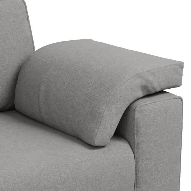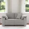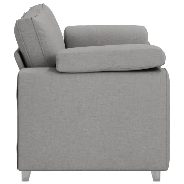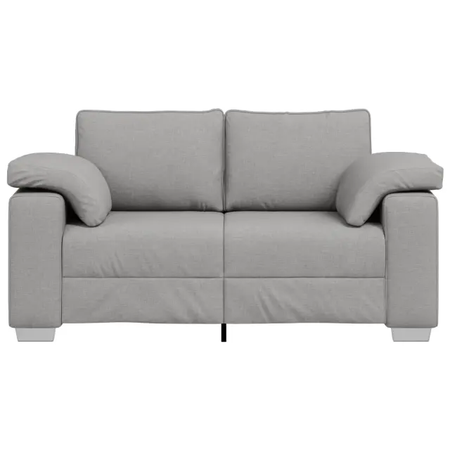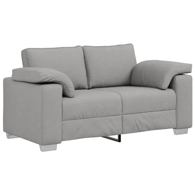 Ta dvosedežna garnitura je zasnovana za osvežitev vašega prostora, lepo združuje udobje in stil. S svojo trendovsko svetlo sivo tkanino in udobnimi blazinami je prava izbira za sprostitev ob pogovoru ali mirnem branju.