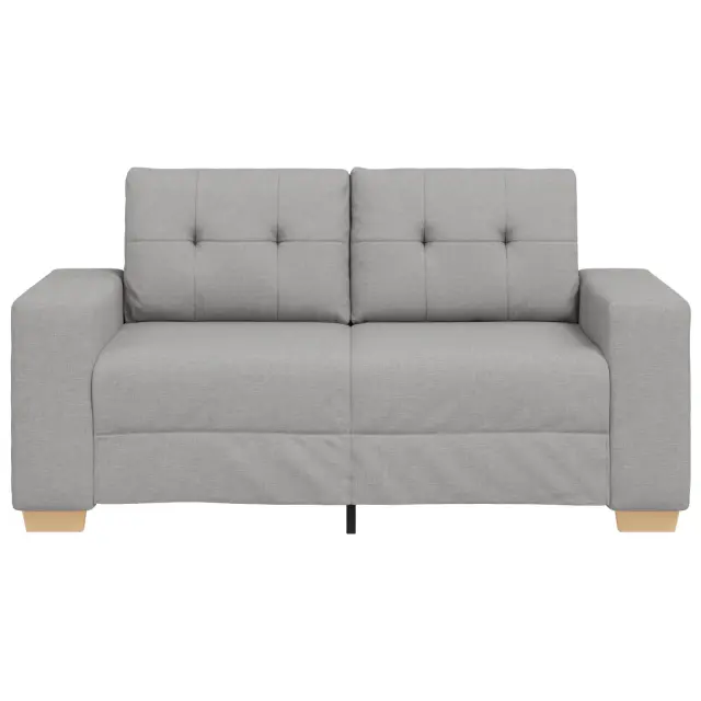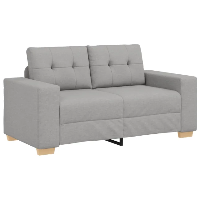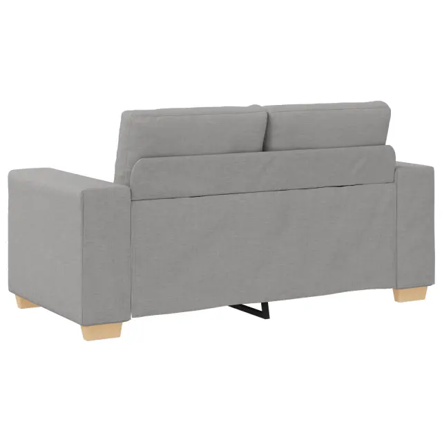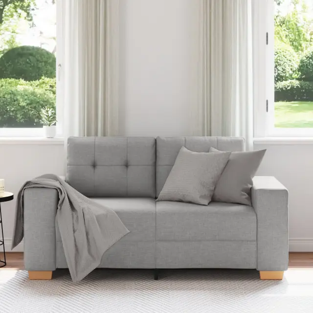 Ta dvosedežna sofa združuje moden stil z udobno funkcionalnostjo, kar jo dela odlično izbiro za dnevno sobo ali prostor za goste. Z elegantno obložitvijo v svetlo sivi barvi se prilega različnim dekoracijam in ohranja svežino ter ponuja udoben prostor za sprostitev.