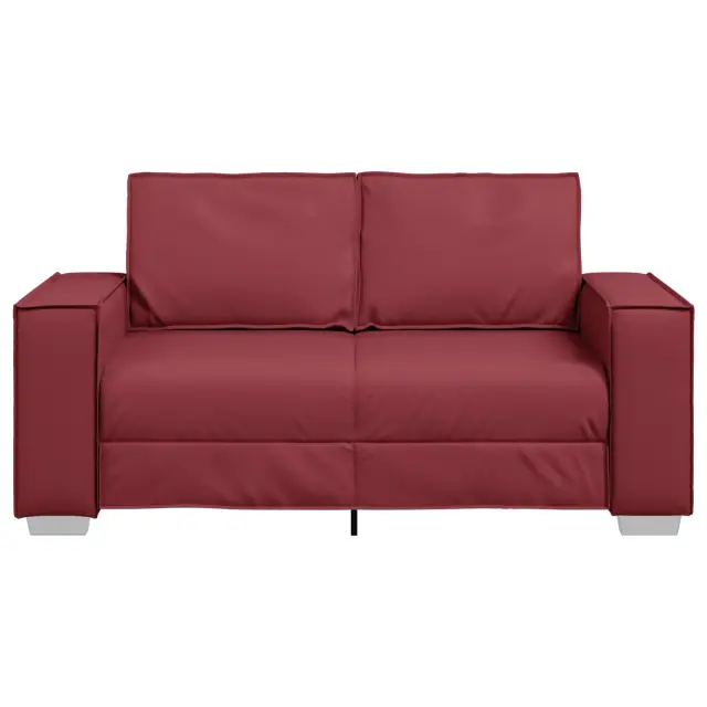 Ta dvosedežna garnitura te objame v elegantni vino rdeči zasnovi, kar jo naredi za idealen dodatek v vsak modern dom ali pisarno. S kompaktno velikostjo in pametnim izgledom ponuja udobje in eleganco brez zavzemanja preveč prostora, kar ustvari prijeten prostor za sproščanje ali zabavo s prijatelji.