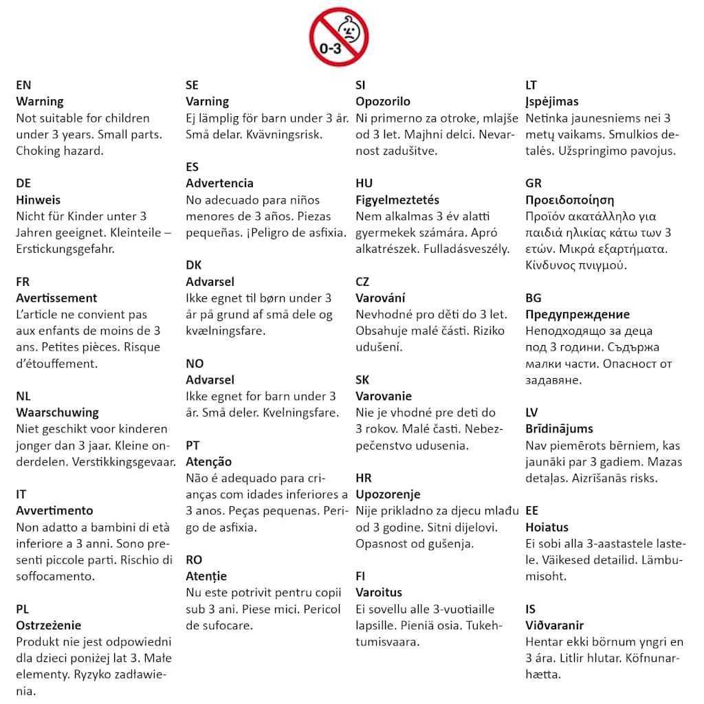 Opozorilo. Ni primerno za otroke mlajše od 3 let.