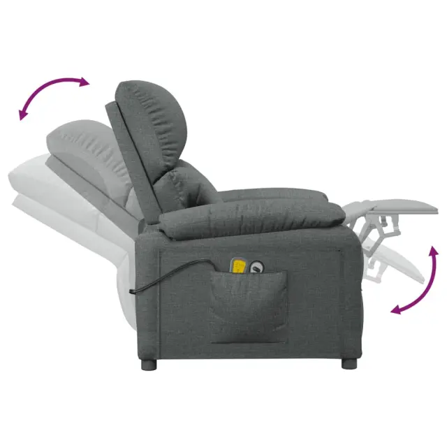 Namestite se in uživajte na tem izjemno udobnem električnem masažnem stolu! Električna funkcija nagibanja: Ta naslanjač je opremljen z električnim motorjem za lažje vstajanje. Ima 3 položaje za nagibanje, zato lahko naslonjalo za hrbet in naslonjalo za noge s priloženim ročnim upravljalnikom z dvema gumboma preprosto nastavite glede na svoje udobje.Funkcija vibriranja: 6 masažnih točk vam omogoča, da izkusite bolje usmerjeno masažo. Poleg tega vam priloženi ročni upravljalnik omogoča izbiro različnih programov masaže. Masažno funkcijo napaja USB priključek, vendar certificiran 5V vir napajanja USB ni priložen.Udobno sedenje: Sedež, naslonjalo za hrbet in široki nasloni za roke, prevlečeni s tkanino, zagotavljajo prijeten in topel občutek, zato se med sedenjem počutite prijetno. Preprosta in čista tkanina je tudi zračna in trpežna.Trden in stabilen okvir: Okvir iz lesa in kovine zagotavlja trdno strukturo in stabilnost. Ta naslanjač je udoben in trpežen.Barva: Temno sivaMaterial: Blago (100 % poliester), kovinaDimenzije: 70,5 x 90 x 100 cm (Š x G x V)Globina sedeža: 42,5 cmGlobina sedeža: 51 cmVišina naslonjala za hrbet: 61 cmVišina sedeža od tal: 44 cmZ električnim motorjem za samodejno nastavitev naslonjala za hrbet in nogeVhodna moč: 100 - 240 V~, 50 - 60 HzIzhodna moč: DC 5 V, DC 28 VPrilagodljivo naslonjalo za hrbet in nogeTip masaže: 6 točkovna vibracijska masažaPotrebno sestavljanje: Da 3073828