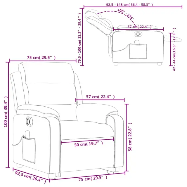 vidaXL Električni masažni naslanjač s funkcijo vstajanja moder žamet