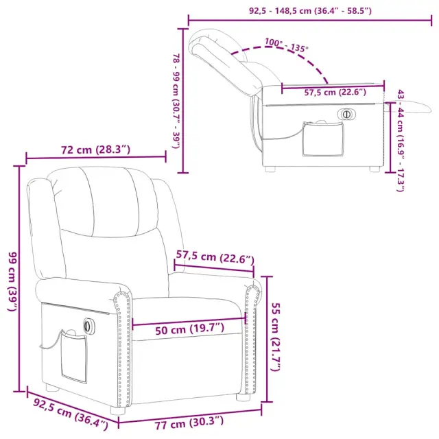 • Funkcija električnega nagiba: Ta naslanjač je opremljen z električnim motorjem, ki pomaga samodejno nastaviti naslon za noge in naslonjalo za hrbet v poljuben položaj glede na vaše udobje s preprostim pritiskom na gumb na strani stola. Ta funkcija omogoča največji nagib 135 stopinj. Poleg tega se lahko naslonjalo z enostavnim pritiskom na gumb samodejno vrne na prvotno mesto.