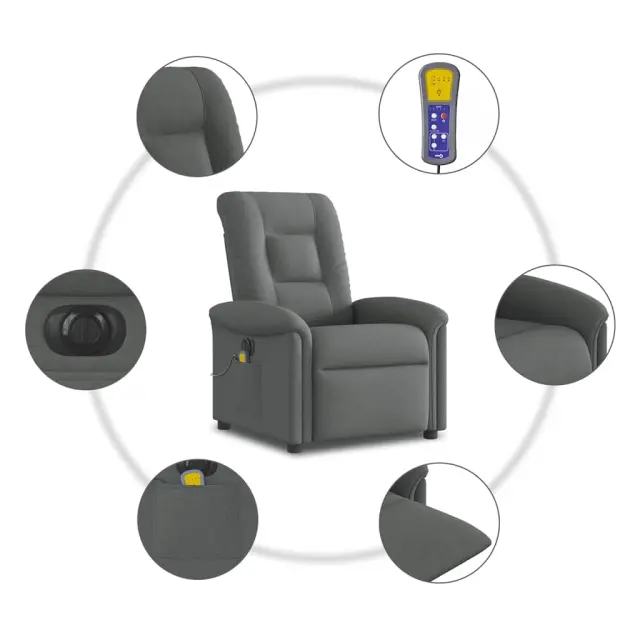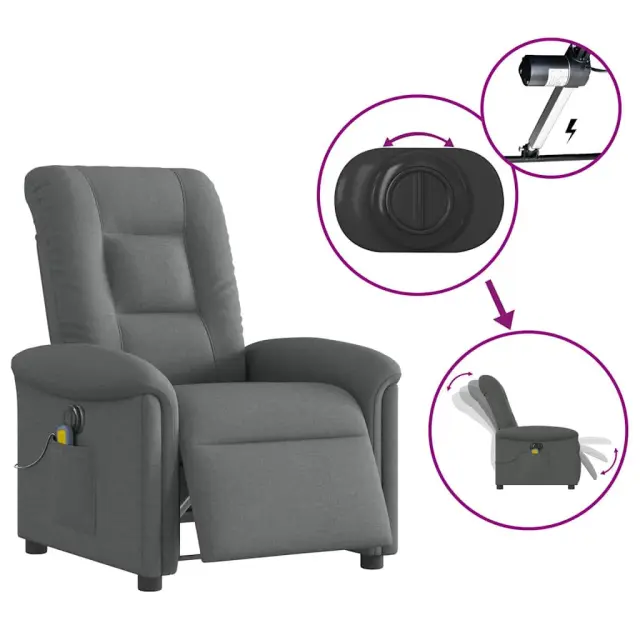 vidaXL Električni masažni naslanjač temno sivo blago