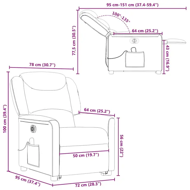 • Funkcija električnega nagiba: Ta naslanjač je opremljen tudi z električnim motorjem, ki pomaga samodejno nastaviti naslon za noge in naslonjalo za hrbet v poljuben položaj glede na vaše udobje s preprostim pritiskom na gumb na strani stola. Ta funkcija omogoča največji nagib 135 stopinj. Poleg tega se lahko naslonjalo z enostavnim pritiskom na gumb samodejno vrne na prvotno mesto.