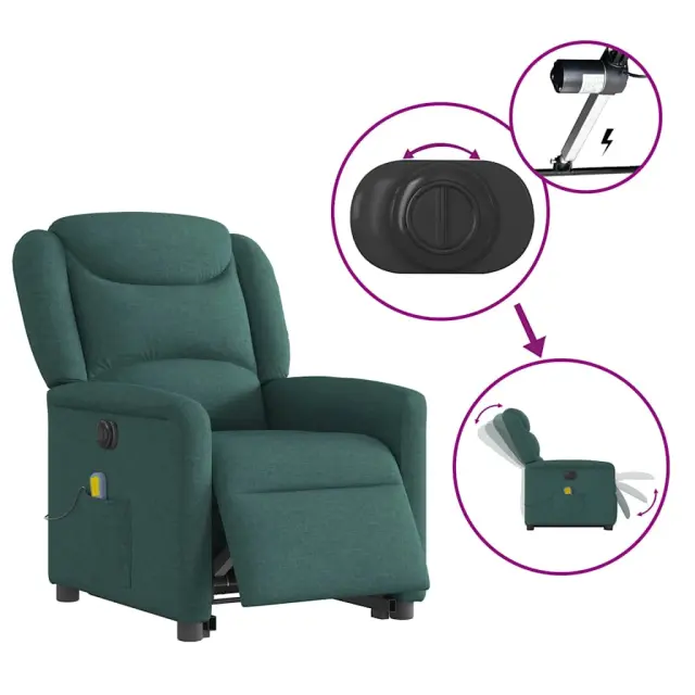 vidaXL Električni masažni naslanjač s funkcijo vstajanja temno zelen