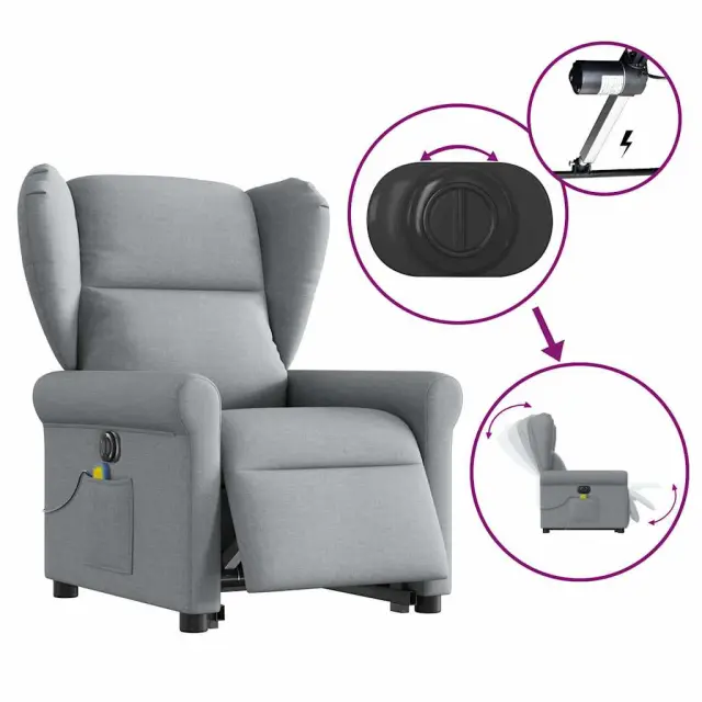 vidaXL Električni masažni naslanjač s funkcijo vstajanja svetlo siv