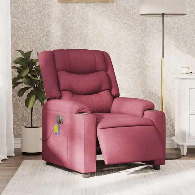 vidaXL Električni masažni naslanjač vinsko rdeče blago
