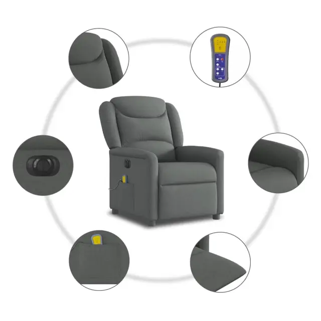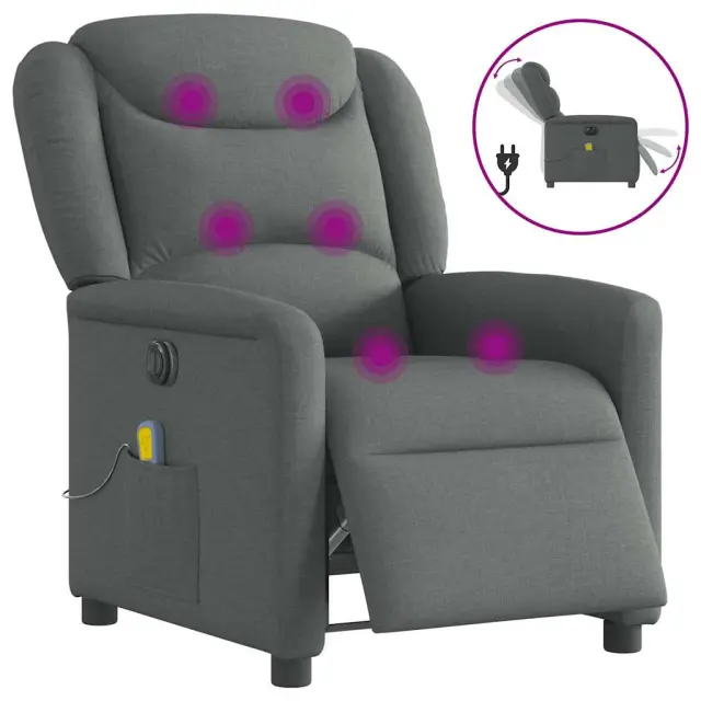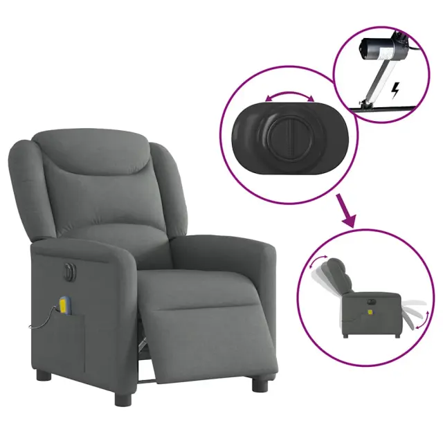 vidaXL Električni masažni naslanjač temno sivo blago