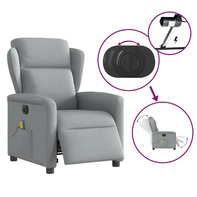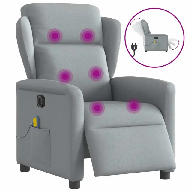 vidaXL Električni masažni naslanjač svetlo sivo blago
