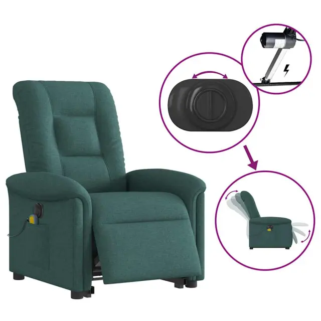 vidaXL Električni masažni naslanjač s funkcijo vstajanja temno zelen