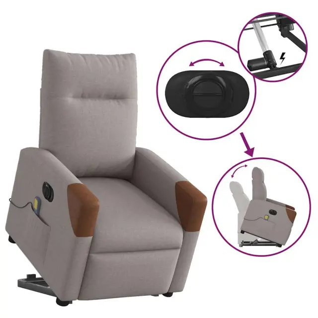 vidaXL Električni masažni naslanjač s funkcijo vstajanja taupe