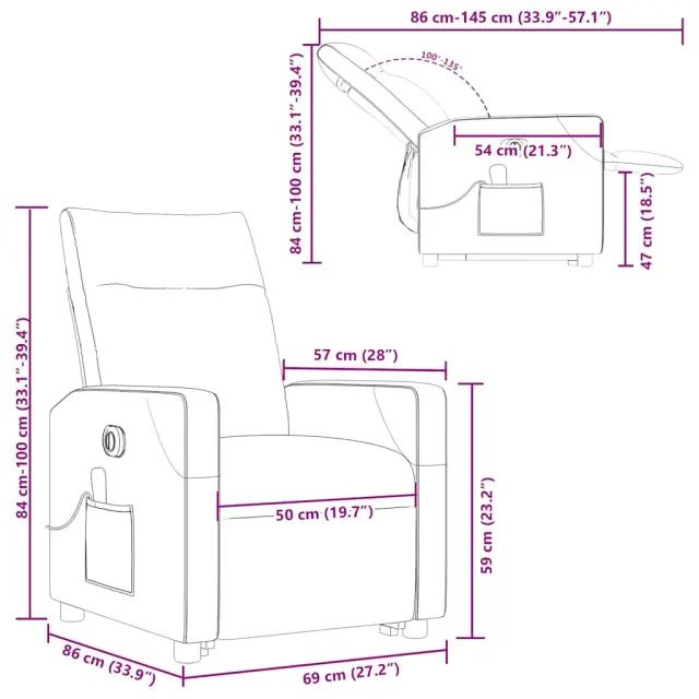 • Funkcija električnega nagiba: Ta naslanjač je opremljen tudi z električnim motorjem, ki pomaga samodejno nastaviti naslon za noge in naslonjalo za hrbet v poljuben položaj glede na vaše udobje s preprostim pritiskom na gumb na strani stola. Ta funkcija omogoča največji nagib 135 stopinj. Poleg tega se lahko naslonjalo z enostavnim pritiskom na gumb samodejno vrne na prvotno mesto.