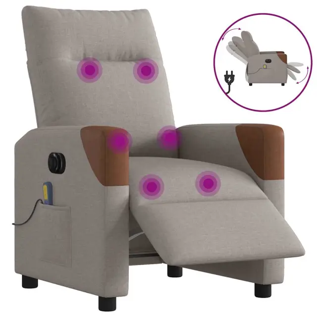 vidaXL Električni masažni naslanjač taupe blago