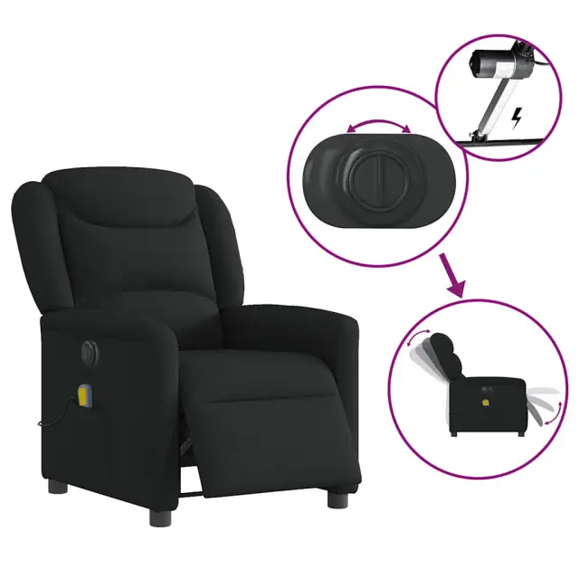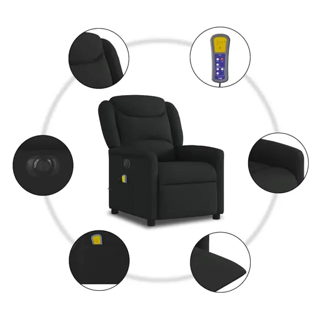 vidaXL Električni masažni naslanjač črno blago