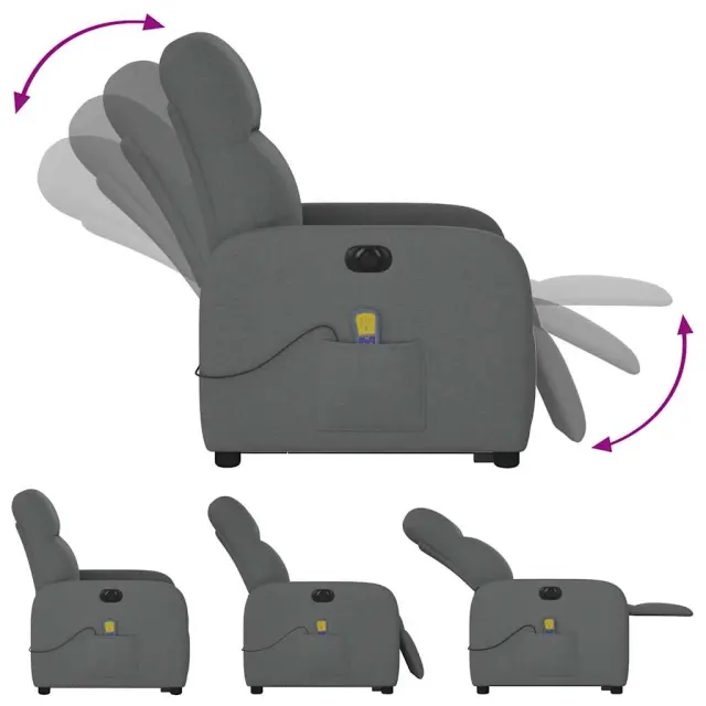 vidaXL Električni masažni naslanjač s funkcijo vstajanja temno siv