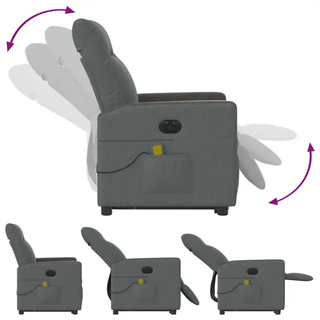 vidaXL Električni masažni naslanjač s funkcijo vstajanja temno siv