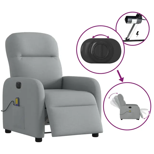 vidaXL Električni masažni naslanjač svetlo sivo blago